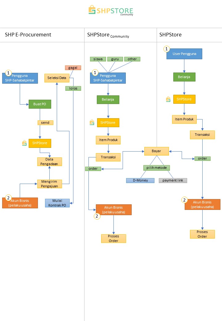 User yang tergabung dalam layanan pengguna SHP-Sahabatpintar melakukan pembelian kepada penjual dan melakukan proses transaksi pembelian.